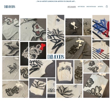 Sitio web tipo portafolio/galería artística llamada DilMood’s, con prendras de ropa personalizadas/pintadas a mano, inspiradose en las galerias de arte como manera de expresar eso mismo.. su arte, con la intencion de conectar con otros artistas.